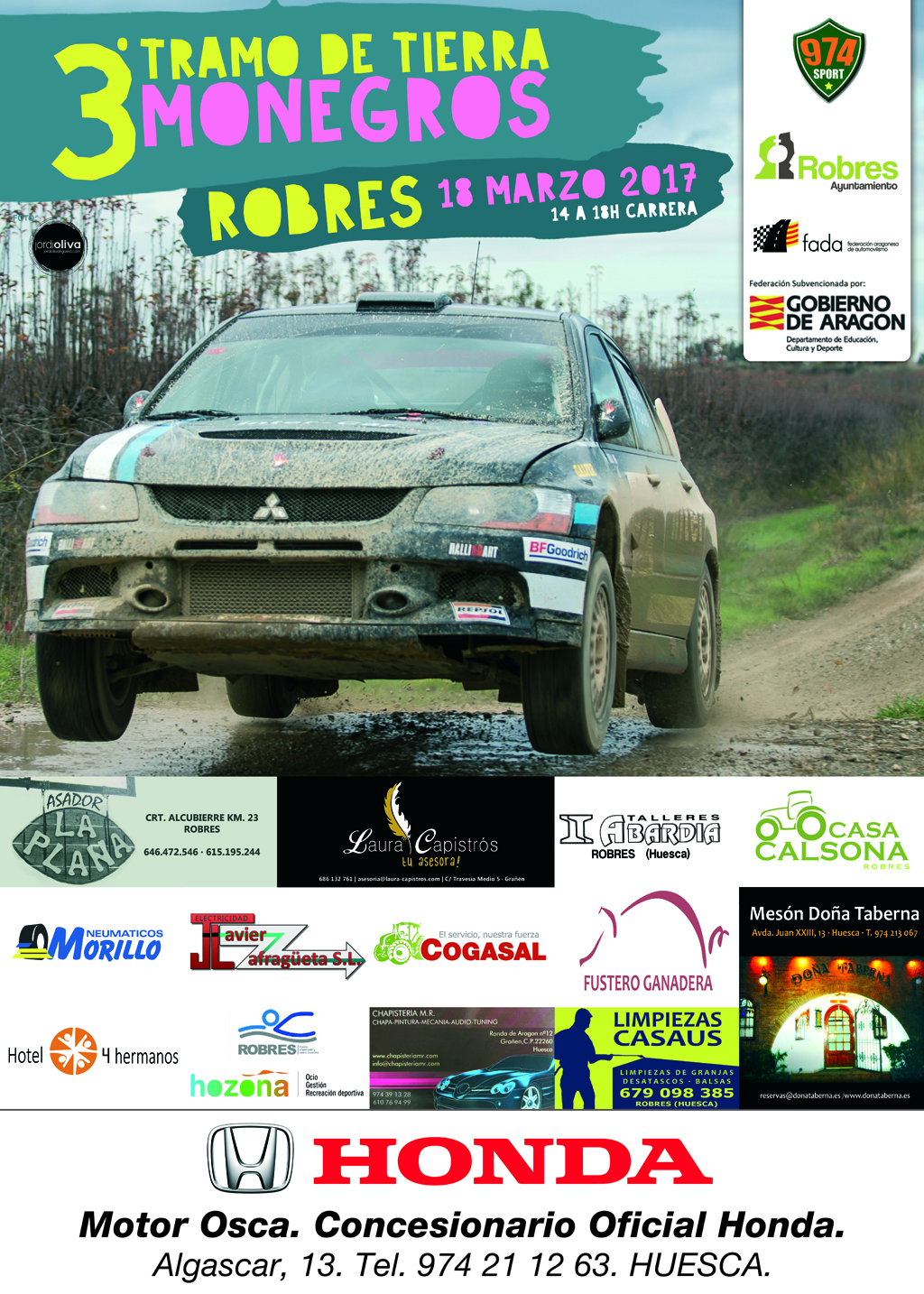 La temporada en el regional de Tramos de Tierra se abre este fin de semana con la disputa del III Tramo de Tierra Los Monegros, que se disputa en la localidad oscense de Robres, hasta donde tienen previsto desplazarse los 25 equipos que conforman la lista de inscritos.