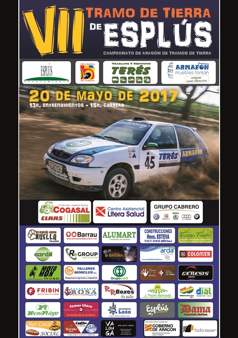 26 equipos han formalizado su inscripción dentro del primer plazo para disputar el sábado 20 de mayo de 2017 la segunda prueba del Campeonato de Aragón de Tramos de Tierra a disputar en la localidad oscense de Esplús. El cierre definitivo de inscripciones al VII Tramo de Tierra de Esplús, organizado por el Club 974 Sport, se llevará a cabo a las 24 horas del miércoles 17 de mayo.